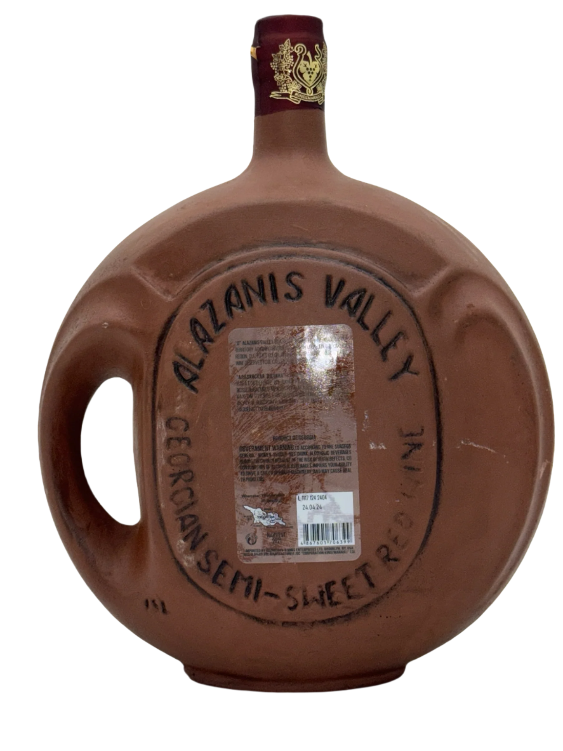 A semi-sweet red wine from Georgia in a traditional clay bottle. It features rich berry flavors with hints of dried fruit and vanilla.